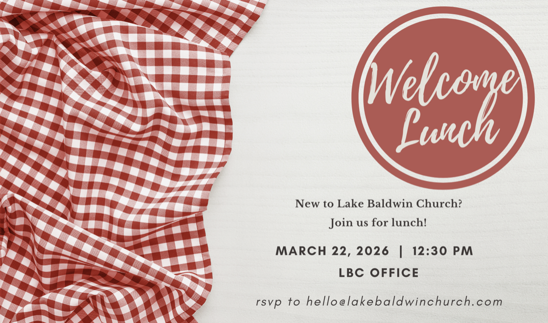 If you're new to Lake Baldwin Church and would like to hear more about who we are, we'd love to invite you to our upcoming Welcome Lunch! Join us after church on March 22nd at 12:30pm for a meal and great fellowship. We can't wait to get to know you!