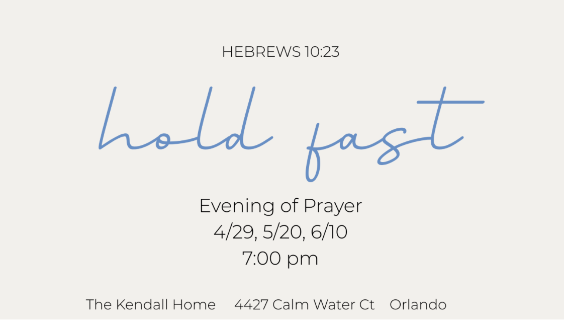 Join us for another Hold fast evening of prayer at the Kendall Home on April 29th as we continue to pray for the next Senior Pastor of Lake Baldwin Church!
